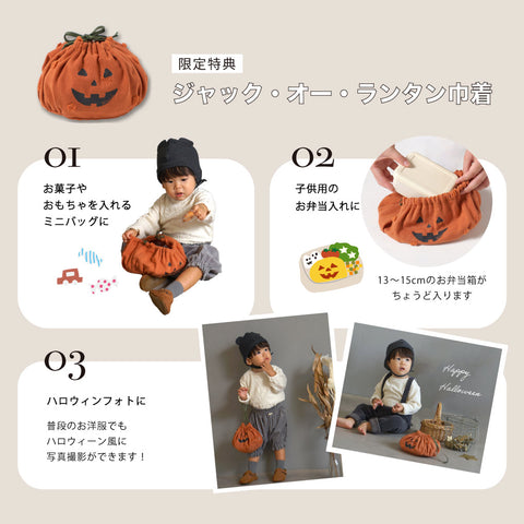 | セット内容 | ウサギ耳ニット帽/ブルマ/ジャック・オー・ランタン巾着 |